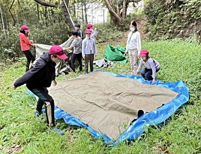 | 新入隊員が来て新しい班が始まりました 新班長の基で野営準備をして野草や筍、ハンバーグ料理を作りました 春とは思えない陽気で、とても良い始まりです |