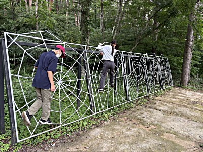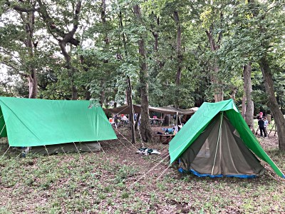 | 昨年に続き、自然豊かな忍野村;昭福荘野営場 先ずは草を踏みしめ、樹々を避けながら上手く設営 自然物を使って立ち竈や水台置き場、回転ゲートなどを創ります 班活動では、忍者屋敷や温泉を其々で楽しみ、簡易飲茶を楽しみます 雨や曇り空で、青空を観る事が叶いませんが、友情を深めた有意義な4日間でした |